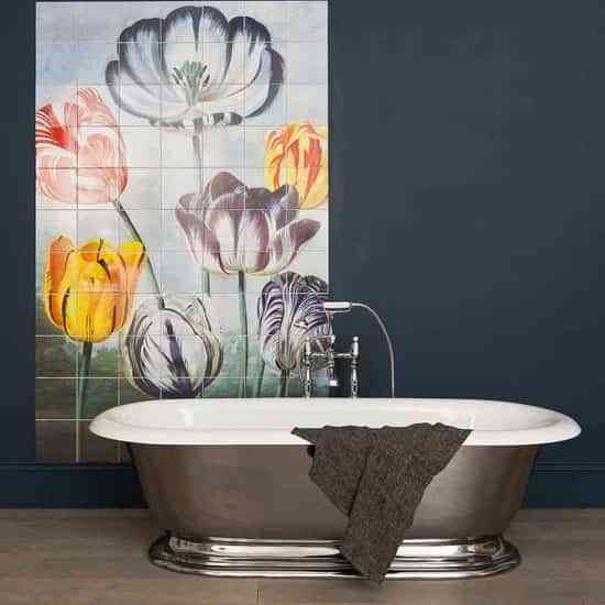 Por último, aquí tienes otra forma de decorar tu cuarto de baño con motivos florales: utilizar azulejos decorados y estampados con flores en alguna de las paredes. Puede que no resulte tan orioginal como los mosaicos, pero es una alternativa que debes valorar y tener en cuenta.