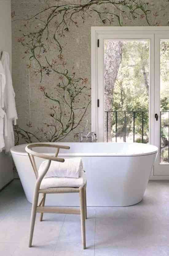 Por eso, adornar un baño con motivos florales y hacerlo con papel pintado es una de las formas más especiales de decorar este espacio. Mi consejo es que, si te decides por esta opción, seas moderado con mobiliario, sanitarios y complementos. Los diseños de flores en papel pintado pueden llegar a ser muy potentes, por lo que será mejor elegir el resto de elementos sencillos y de color blanco, por ejemplo.