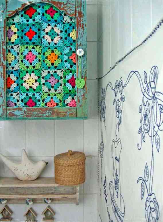 Y aquí tienes otra idea que seguro que te gusta. A mí me ha parecido de lo más original, y una forma genial de poner color allí donde lo necesitas. Se trata de realzar la puerta de un armario con una aplicación tejida a crochet.