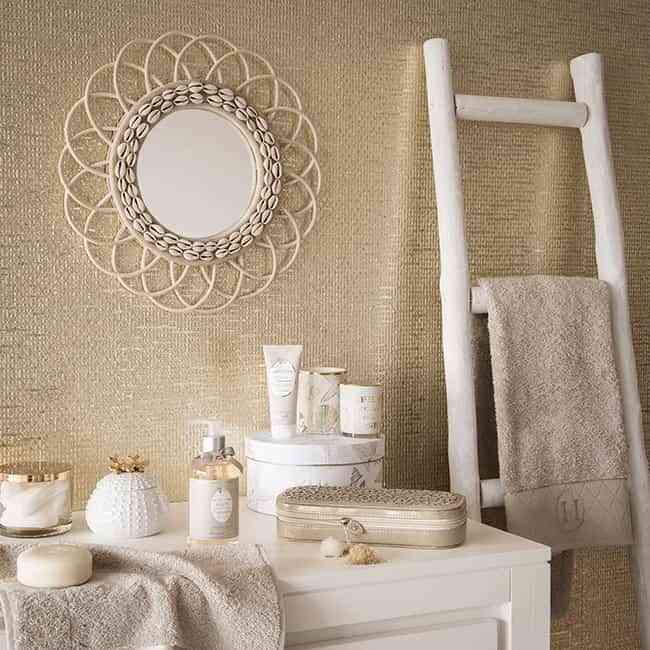 Si hay algo realmente bello en un exótico desierto es su luz y sus miles de matices a lo largo del día. La espectacular luminosidad que irradian sus paisajes. ¿Por qué no inspirarnos en ella para que nuestro dormitorio sea un espacio más envolvente y relajante? Empezaremos a notar el cambio introduciendo la paleta cromática de sus dunas y montañas. Es decir: tierras, naranjas, cremas y dorados en distintos tonos y acabados. Podemos jugar con ellos para pintar muros y superficies. O bien hacerlos visibles sobre objetos decorativos muy singulares y en sintonía con este tipo de decoraciones. Me refiero a grandes hojas vegetales bañadas en color oro, o pequeñas cabezas de animales que podrán lucirse en lugares especiales o algún rincón de la estancia. Quizá encima de una mesita auxiliar, o presidiendo la zona de la cama.