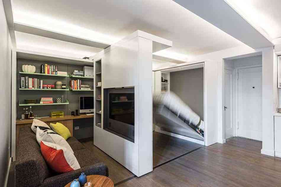 En realidad son muebles multifuncionales que se deslizan sobre guías y que por lo general se mueven con sistemas automatizados que facilitan su desplazamiento. Sobre todo sin son modelos de gran tamaño y peso. Encajan a la perfección en interiores con un espíritu muy funcional, con una percepción del espacio polivalente. Con ellos podemos disfrutar de un salón totalmente diáfano durante gran parte del día, reuniendo en él la mayoría del equipamiento, incluso la televisión. Y cuando llega la noche, el hecho de moverlos permitirá contar con ambientes nuevos, como por ejemplo un dormitorio, o un armario ropero. Parece magia pero no lo es.