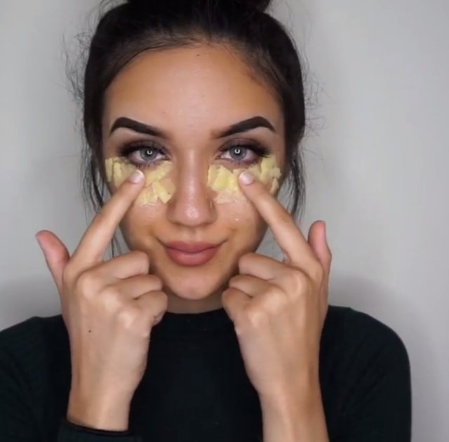 Mezcla cúrcuma en 100 mililitros de jugo de piña natural hasta obtener una pasta espesa. Aplícala sobre tus párpados durante 10 minutos y limpia con un paño.