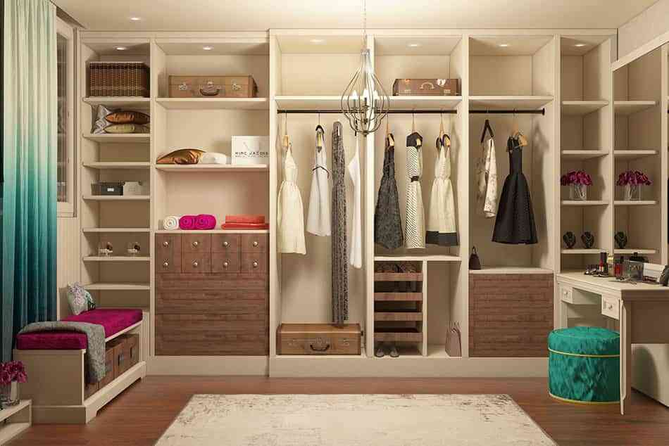 Un vestidor abierto que ocupe de suelo a techo