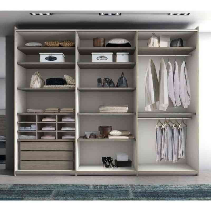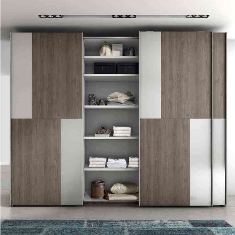 Es un mueble que se puede personalizar en todos los sentidos. El color de las puertas, los materiales, la distribución, etc. Sin duda, este tipo de armarios son muy versátiles y funcionales ya que el espacio interior es muy amplio y se pueden hacer divisiones para zapatos, bolsos, camisetas, camisas, pantalones, ajustándolo a la necesidad de cada persona. Este tipo de muebles son adecuados para casas pequeñas, ya que brindan mucho espacio de almacenaje. Otro ejemplo es el armario Gratia.