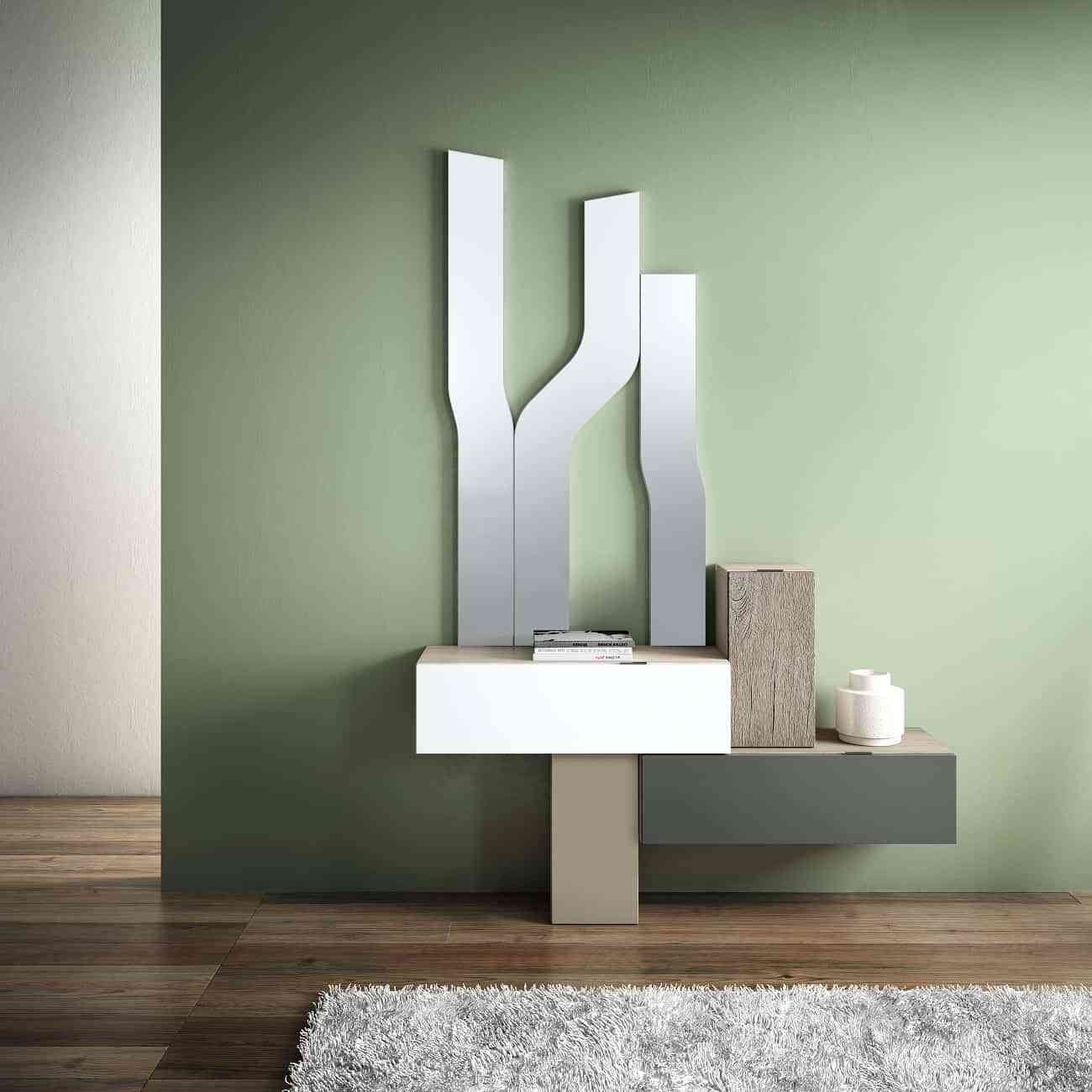 Para los que buscan líneas modernas, Abstract, construido a base de módulos de maderas cromadas que se superponen, crea una estructura vertical perfecta para vestíbulos pequeños.
