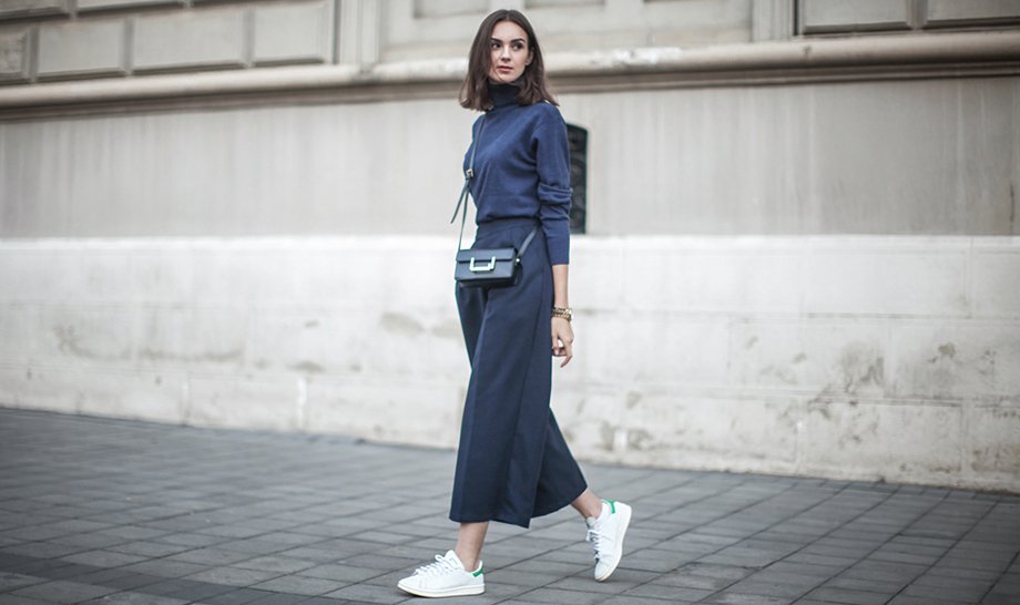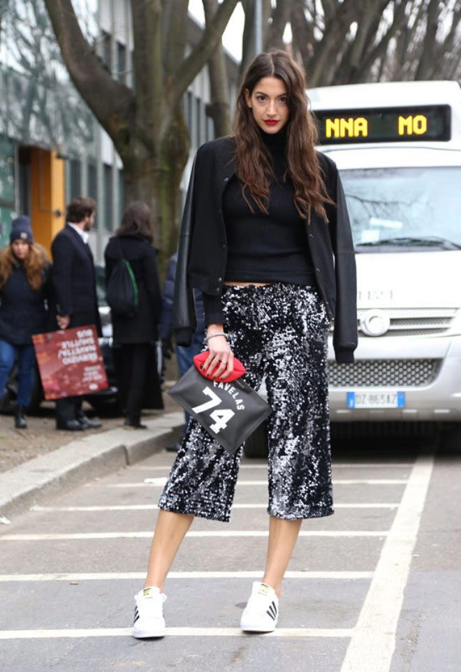 9. Combina los pantalones anchos con tenis y lograrás un resultado fantástico