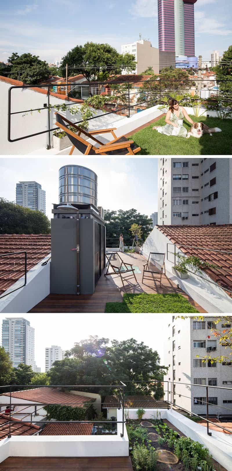 La cubierta tiene una pequeña área de césped y jardín, así como espacio para relajarse.