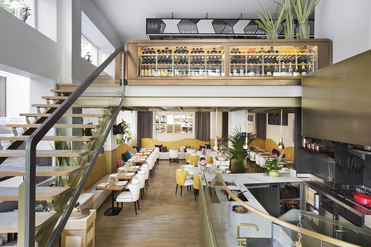 El proyecto empezó con la transformación de la fachada. Se trataba de un cambio crucial para definir la imagen del restaurante y que fuera capaz de llamar la atención de las personas. Para conseguirlo, se apostó por el uso del blanco en combinación con el dorado, así como materiales de calidad. Esto supuso un antes y un después en una calle con mucho encanto.