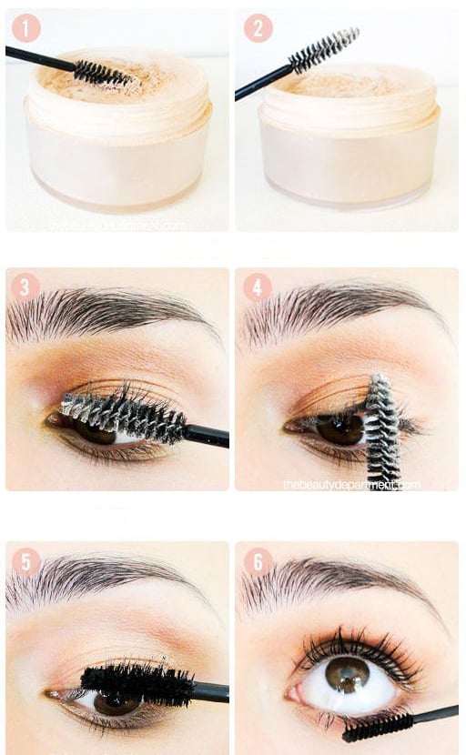 Aplica un poco de polvo traslúcido sobre tus pestañas antes de aplicar el rímel. De esta manera lograrás tener unas pestañas con mayor volumen.
