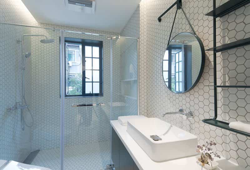 En este mismo piso, se instaló un dormitorio de invitados y un baño decorado con baldosas hexagonales.